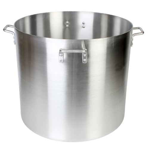 200 quart aluminum stock pot. Mirror polished stock pot with commercial thickness for efficient heating. Dent resistant surface to endure duty in a professional kitchen. Easy to clean. Available from 8 to 200 quart capacity. NSF approved. Stock pot lid available sold separately.